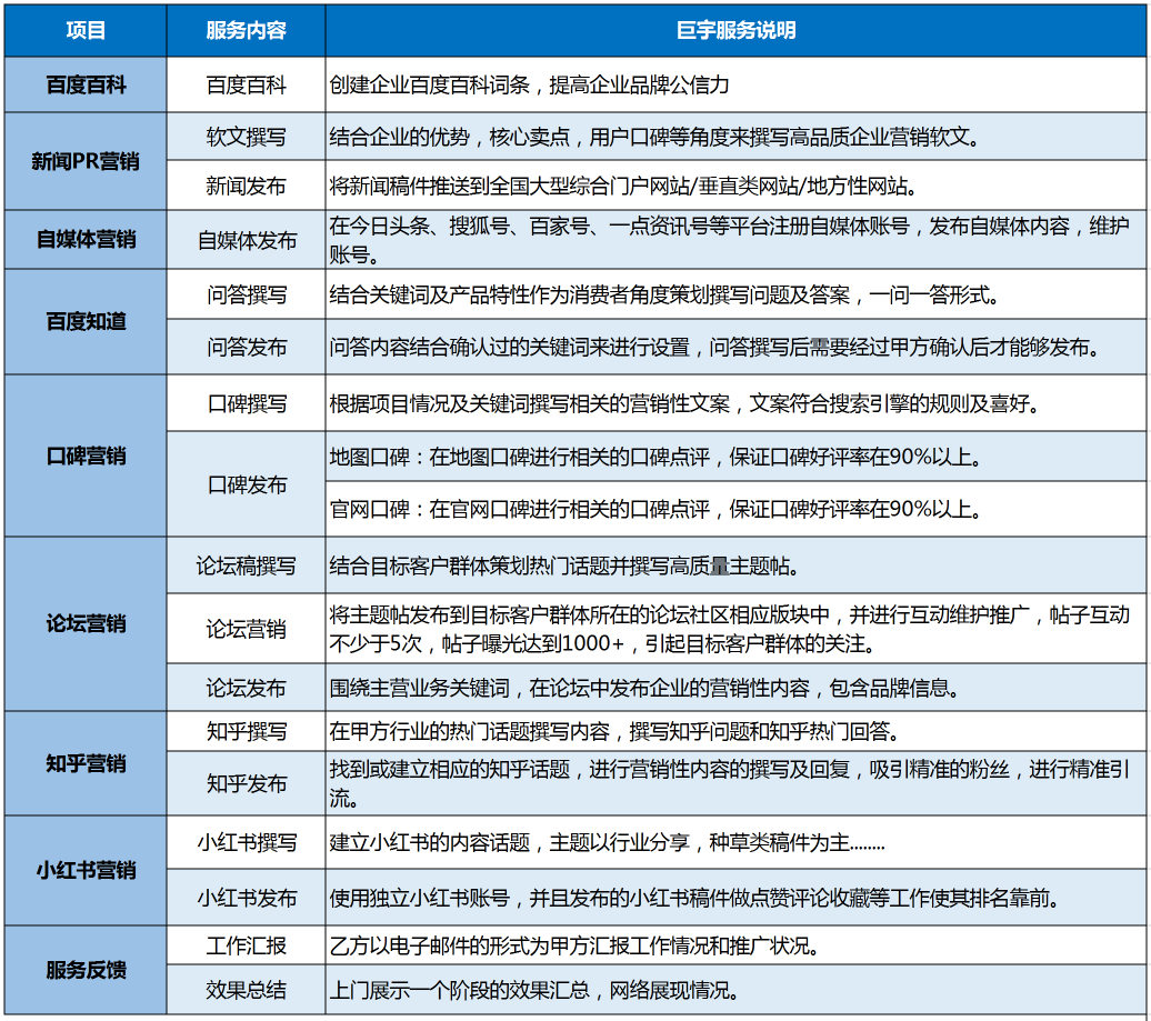 •内容基石构建:企业百科创建、整合营销策划、营销内容生产、全平台内容铺设